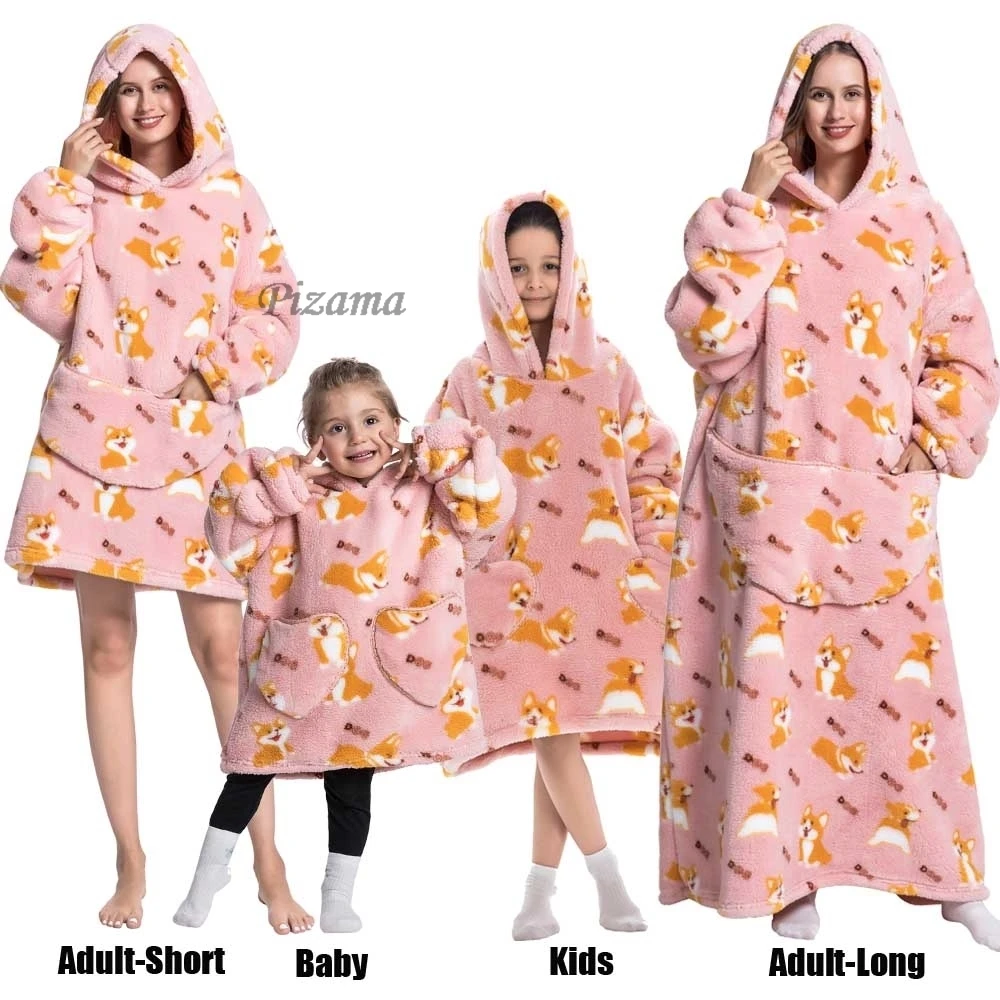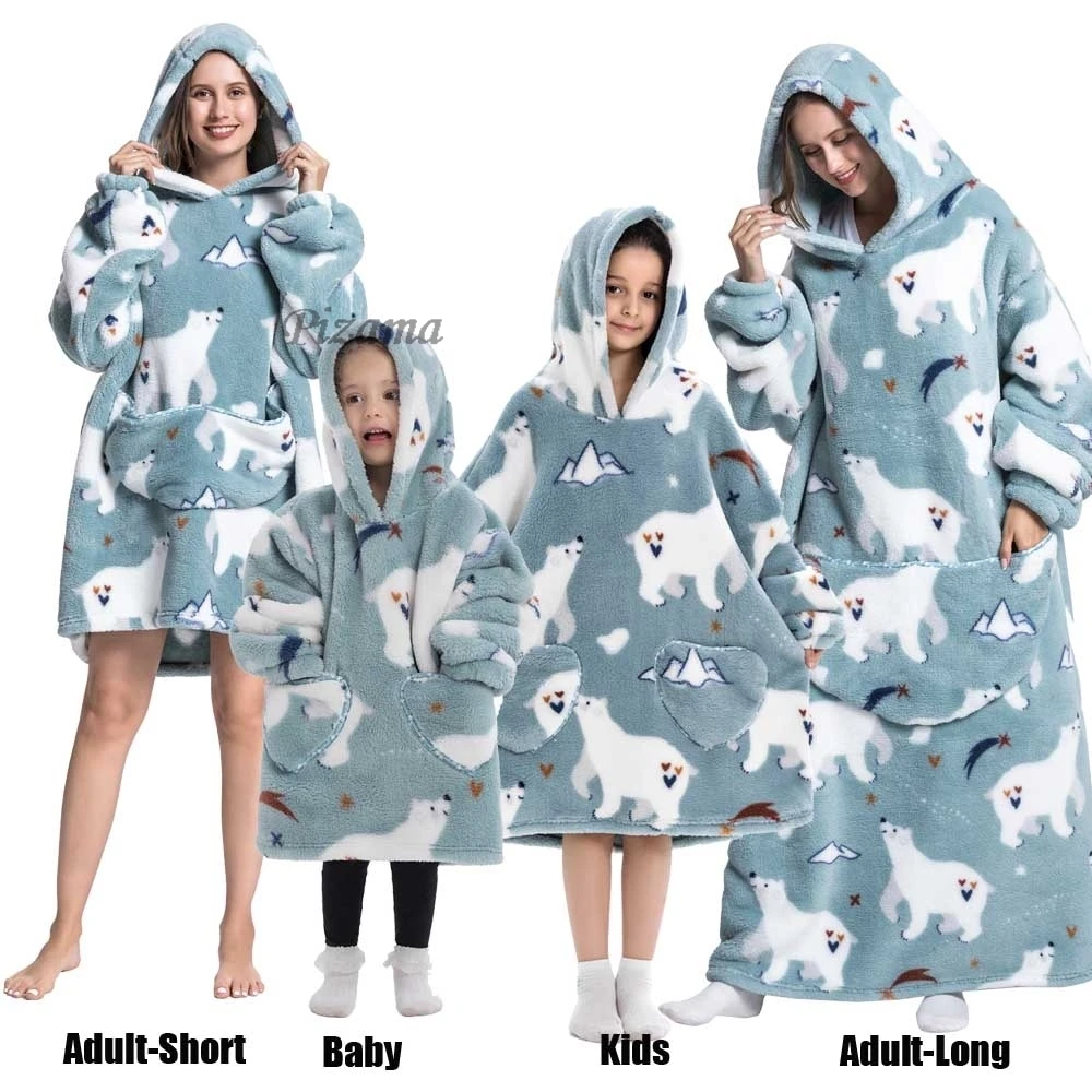 Family Matching Clothing Sets Winter Warm Thick Oversized Hoodies Women Adult Sweatshirts TV Blankets Sherpa