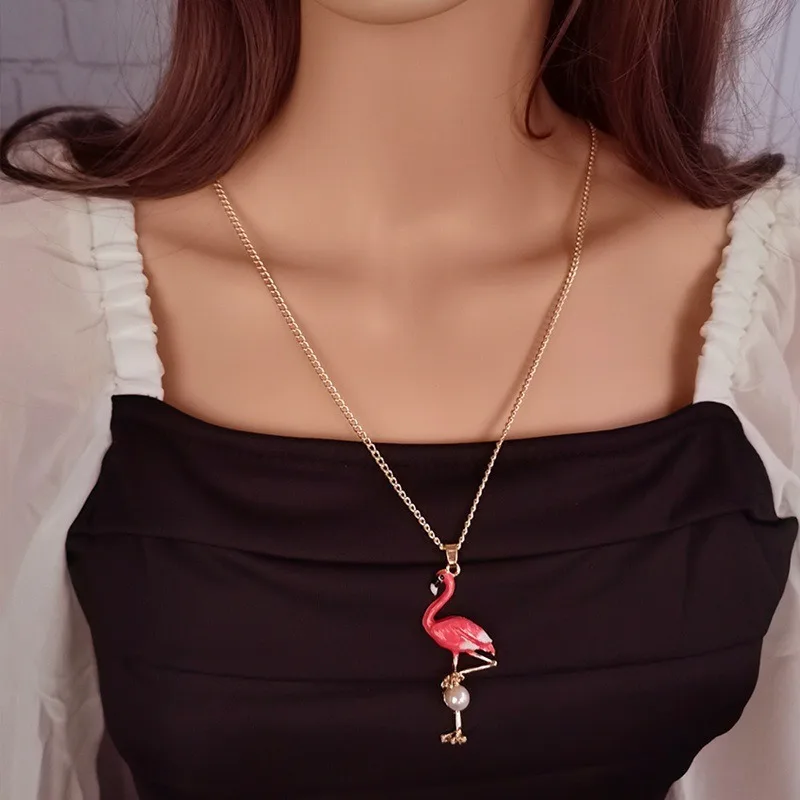 Flamingo Pendant Long Necklace