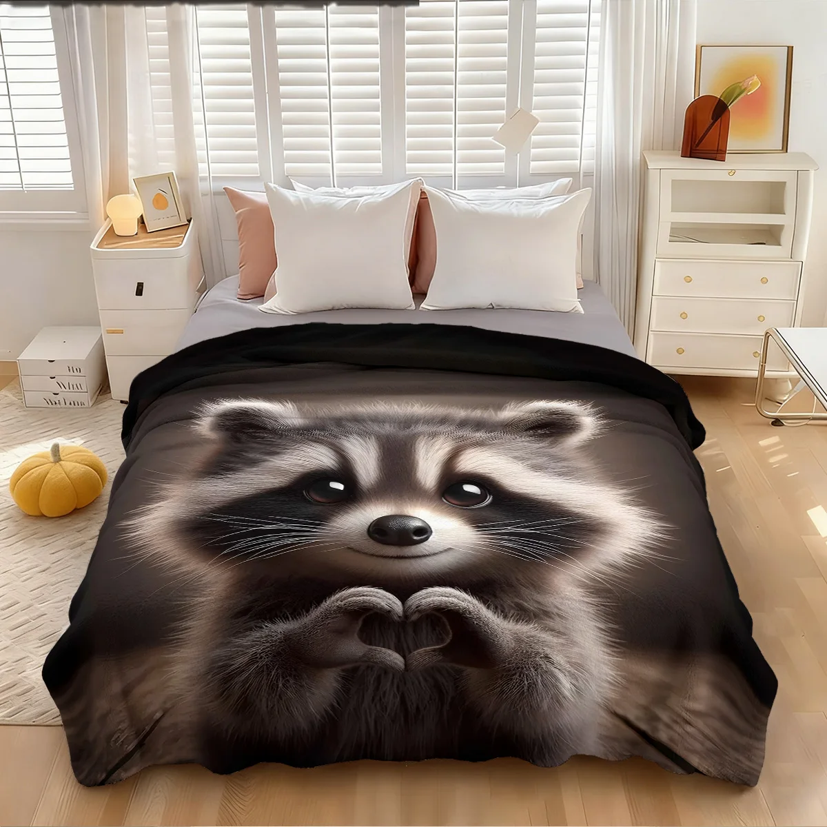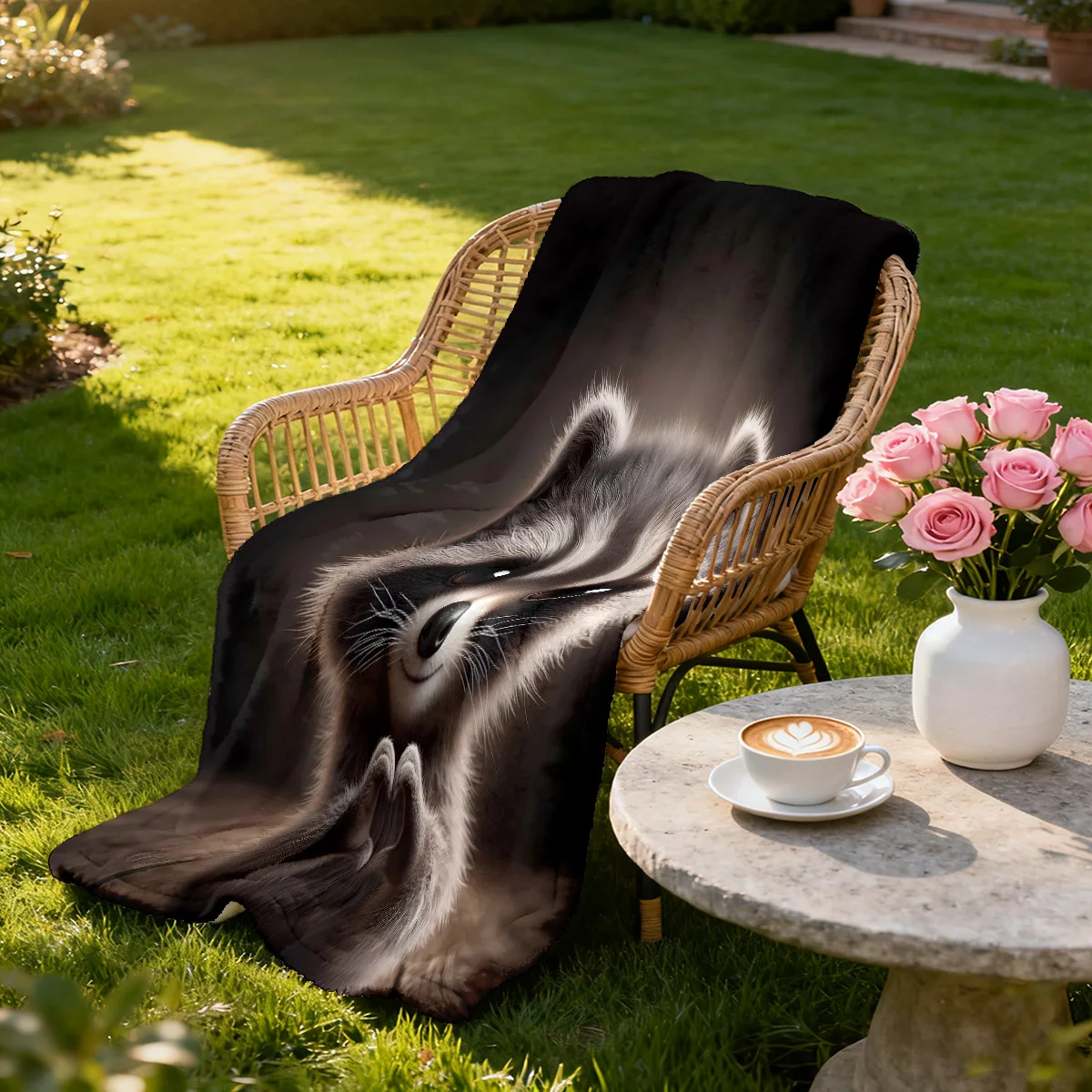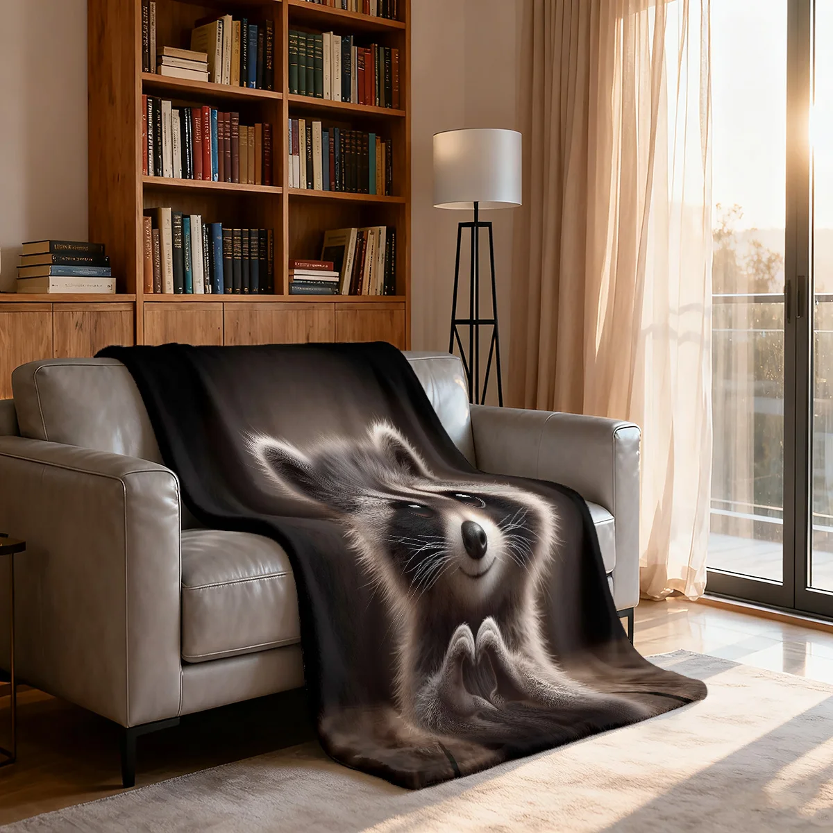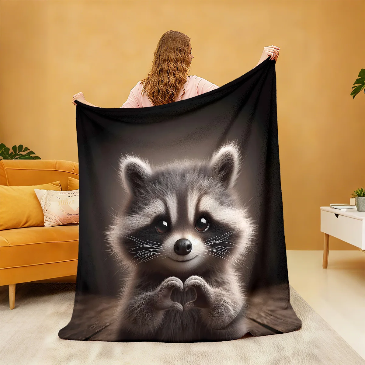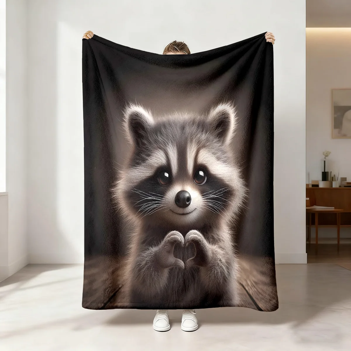 1pc Raccoon Animal Printed Flannel Blanket Multi Size
