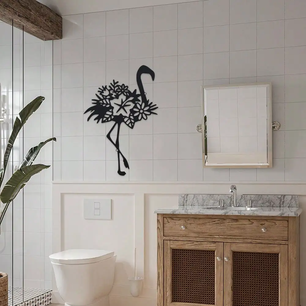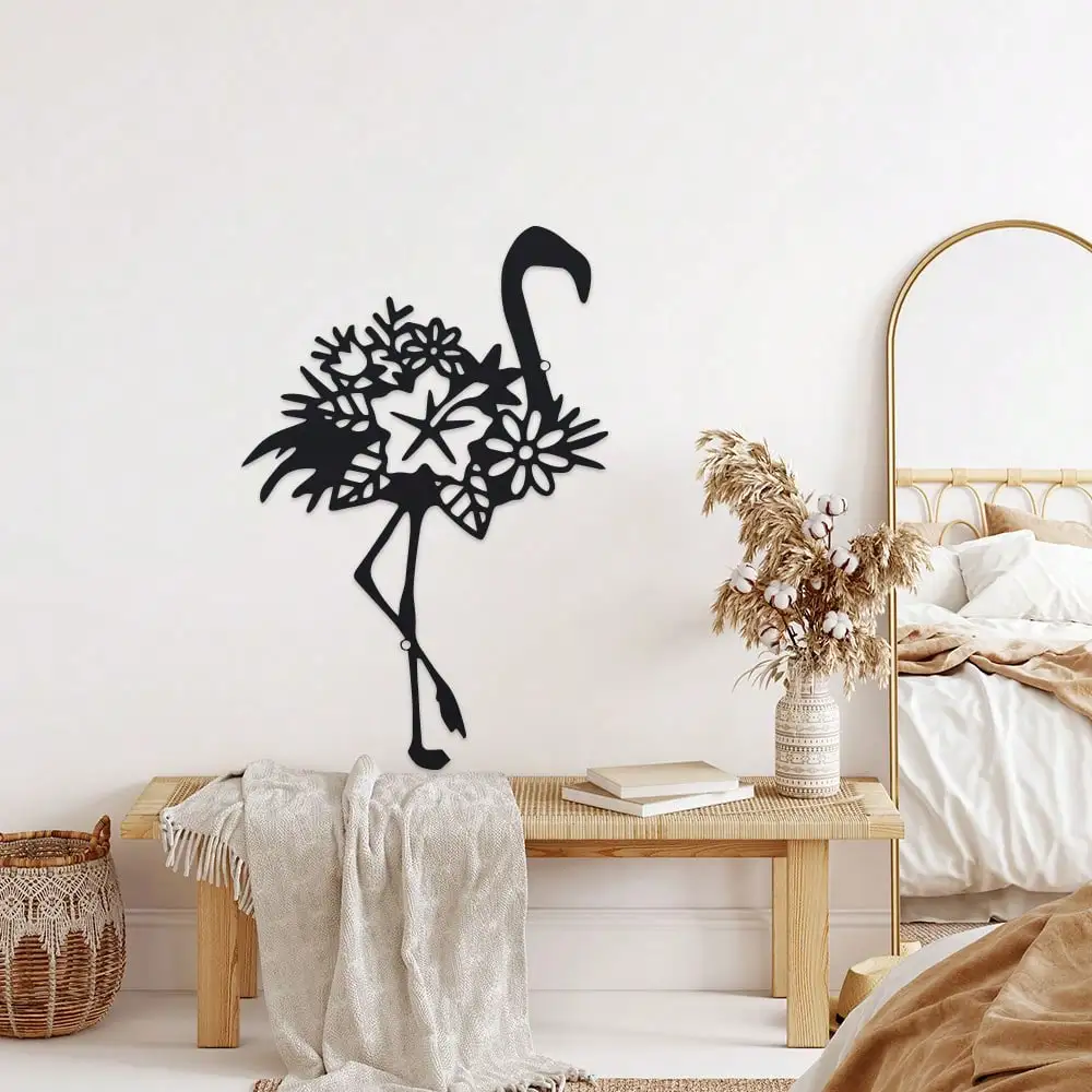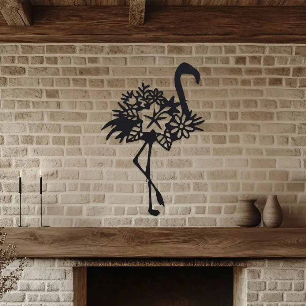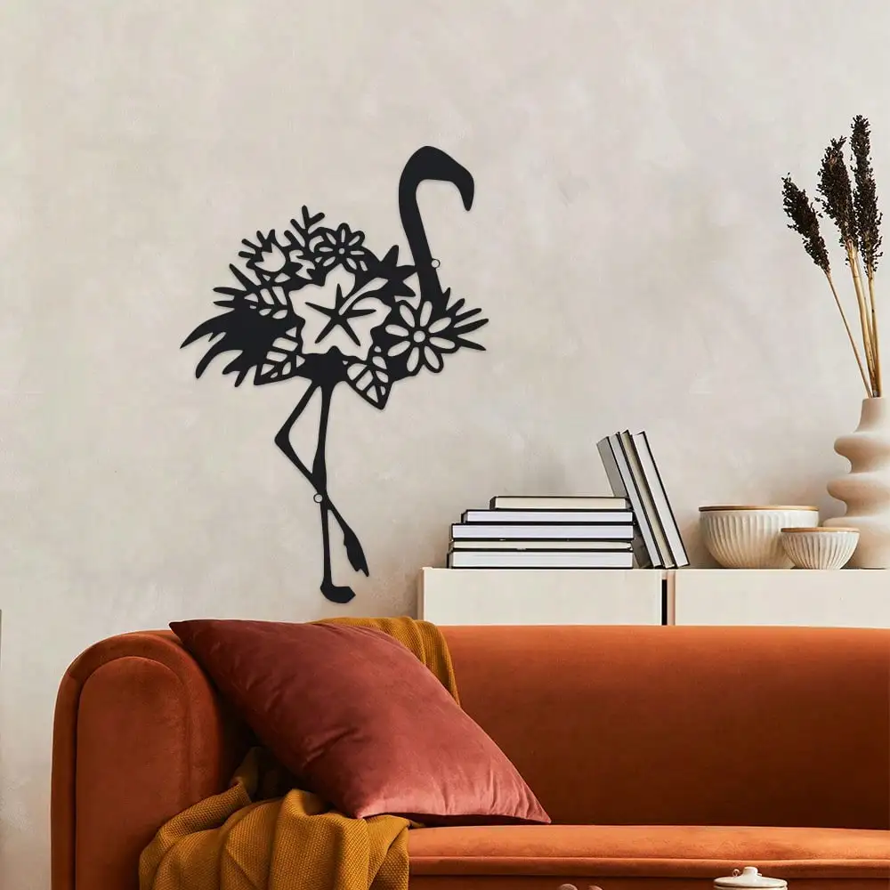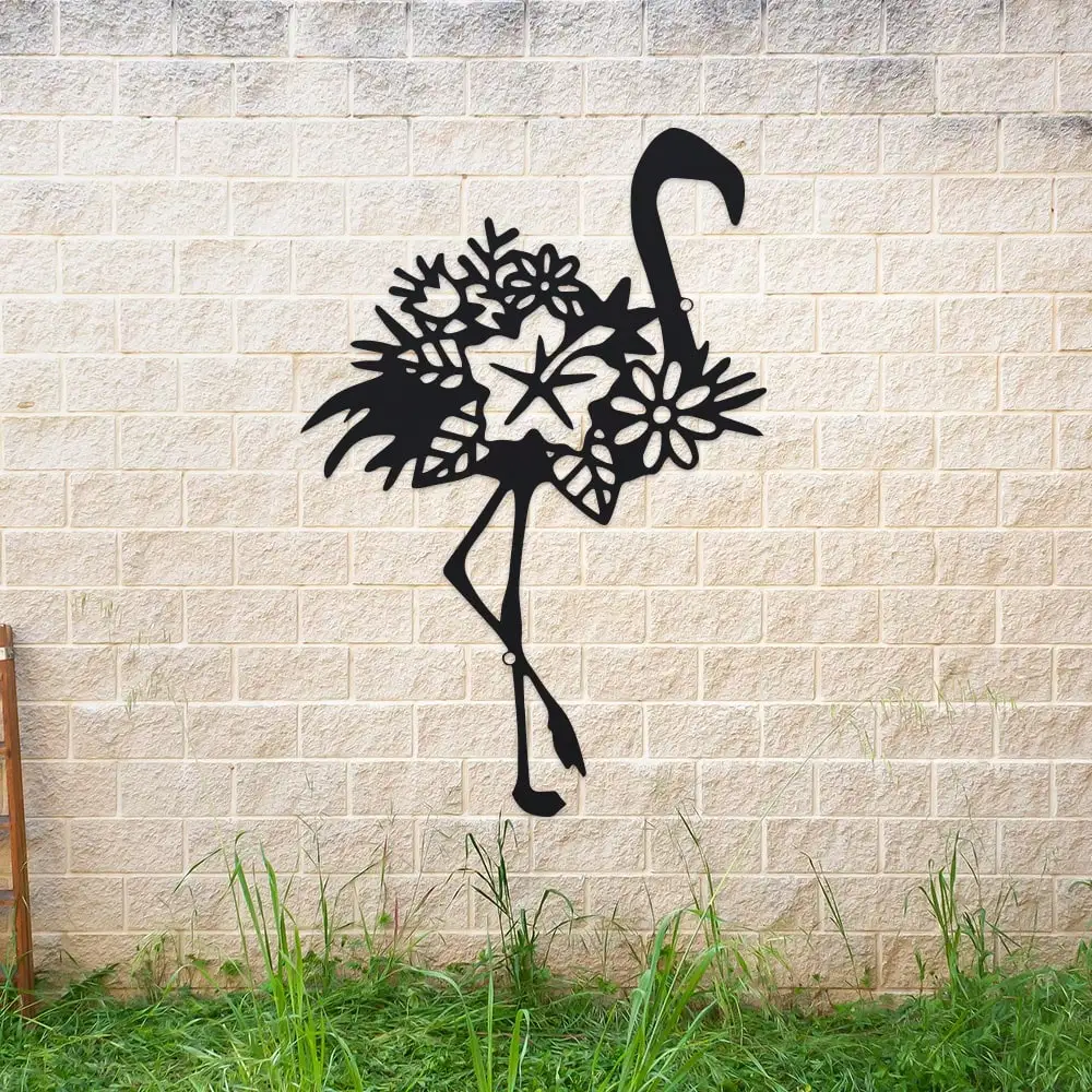 Metal Flamingo Mural Decoration - 1pc, 11.81 inch Iron Outdoor Sculpture