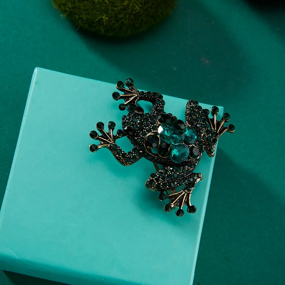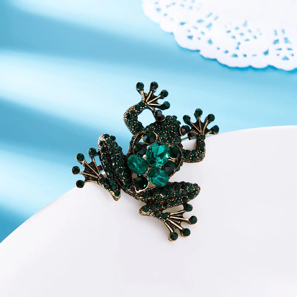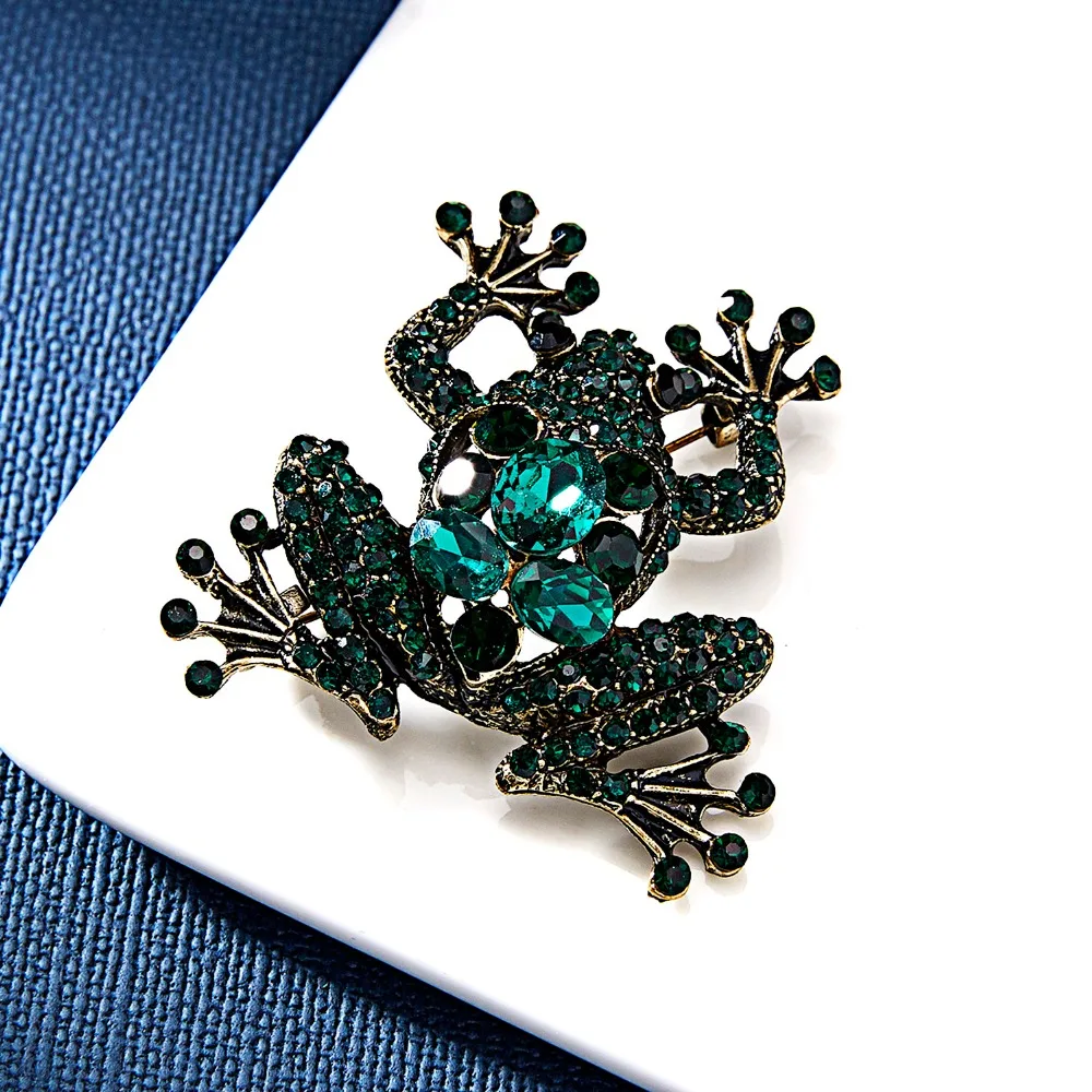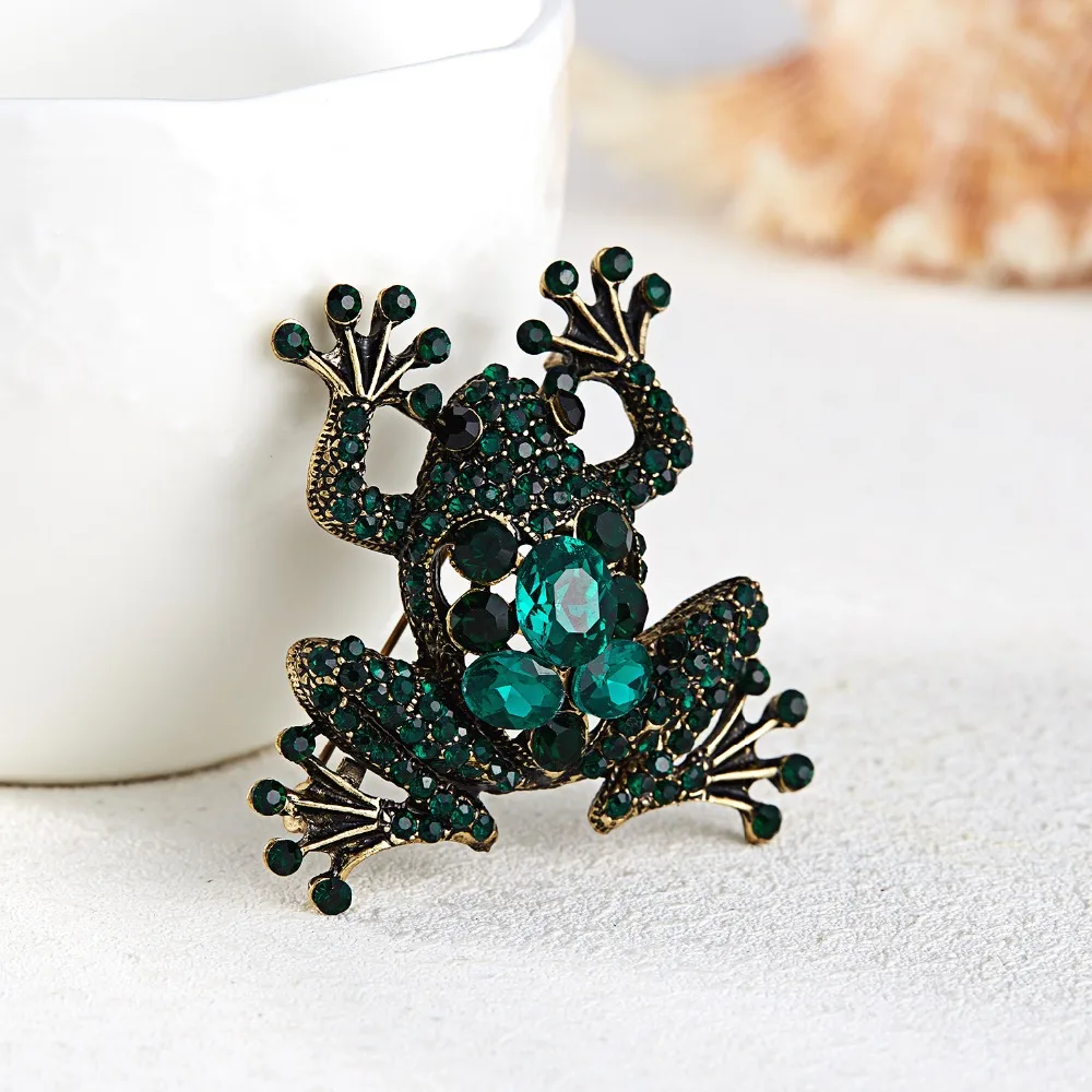 Frog Brooch Vintage Crystal Frog Animal Brooches