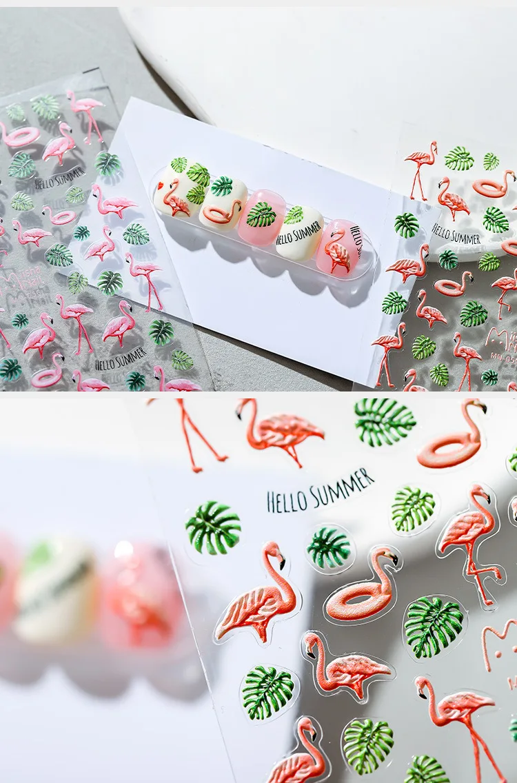 Cute Red Flamingo Green Turtleback Bamboo Nail Art Decoration Sticker 5D 3D