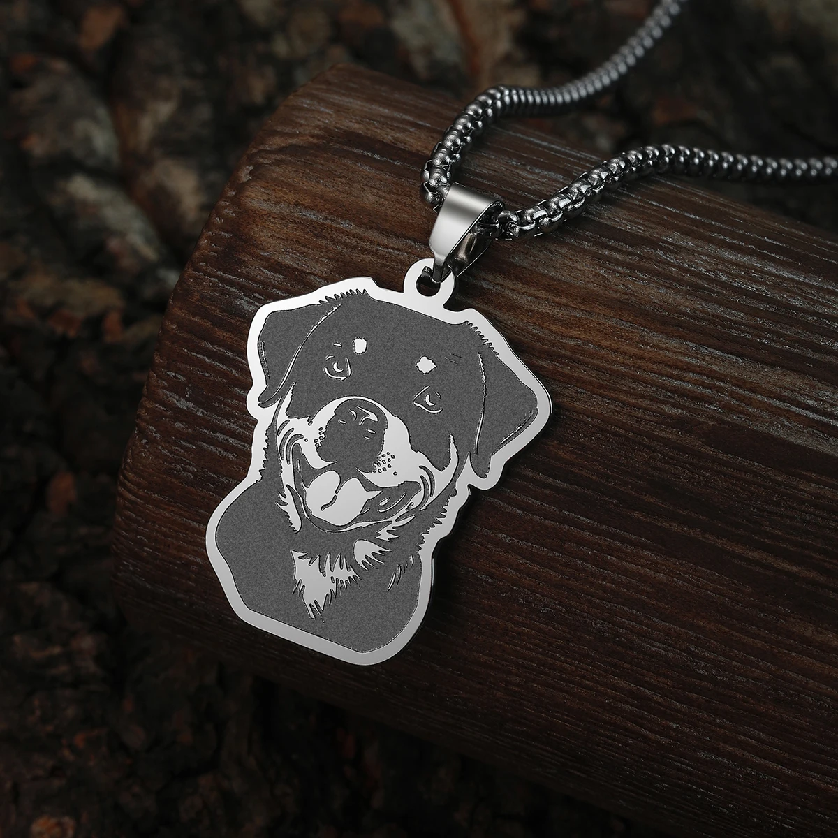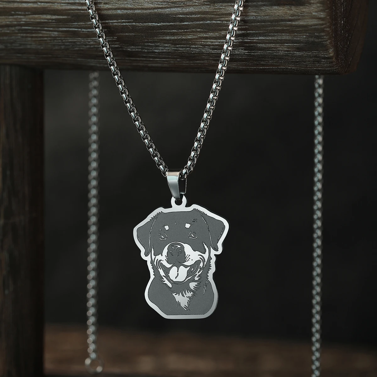 Gold Plated Rottweiler Pet Dog Design Tarnishproof Stainless Steel Pendant Charms Necklace for Women Men
