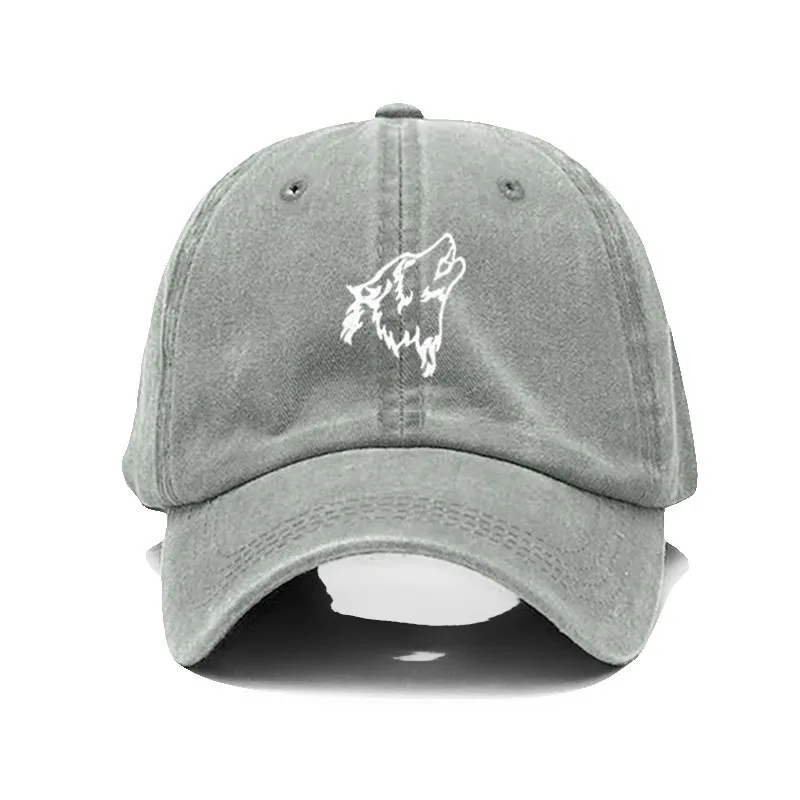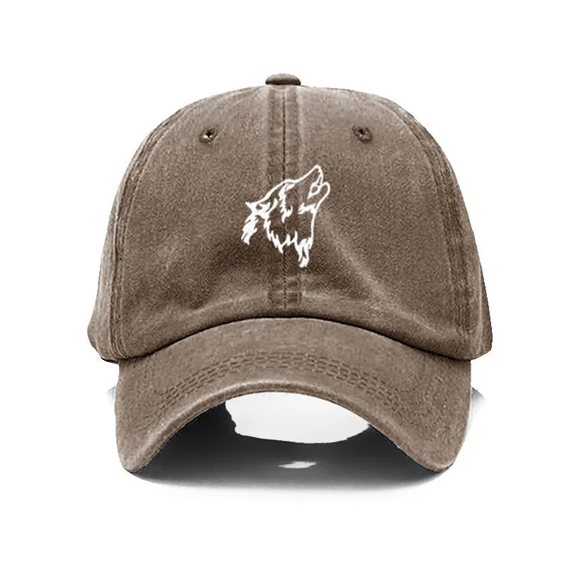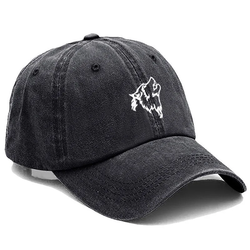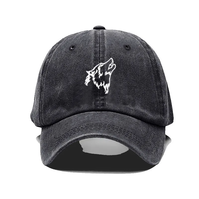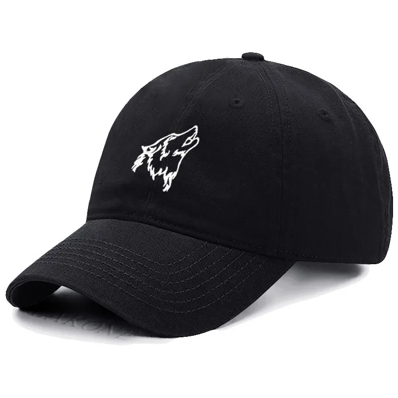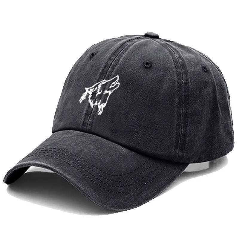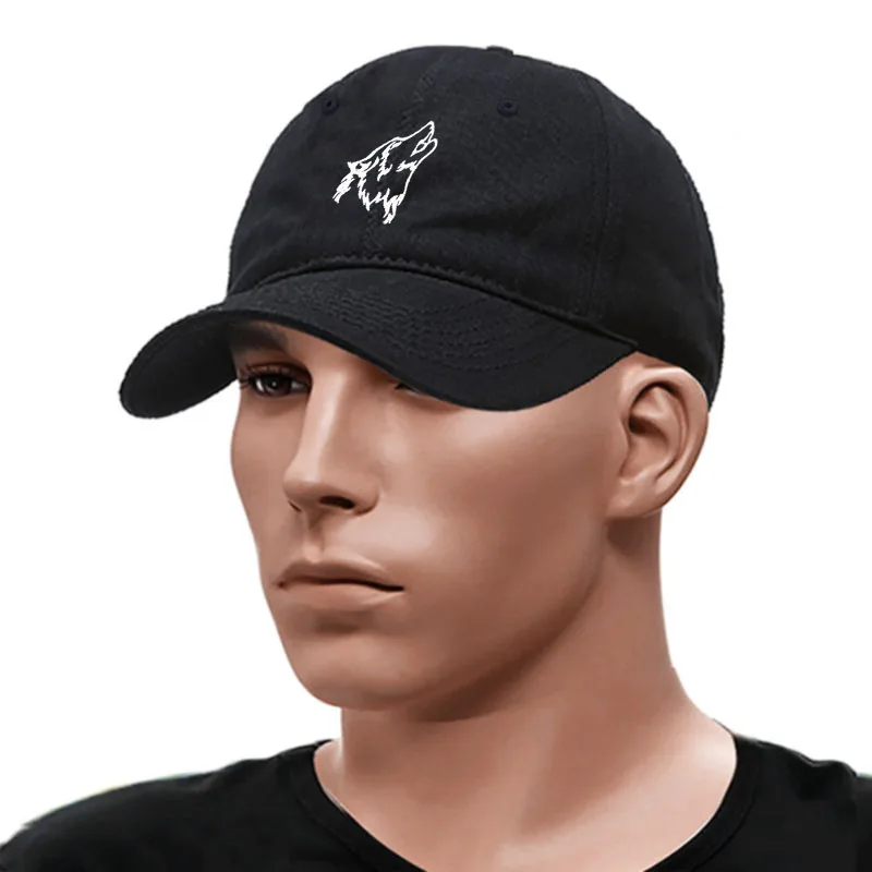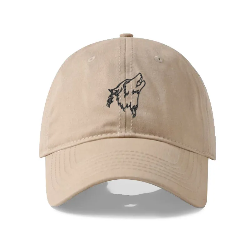 Wolf howl Embroidery Soft Cotton Men Baseball Cap