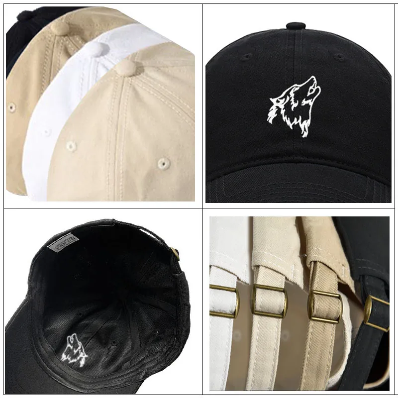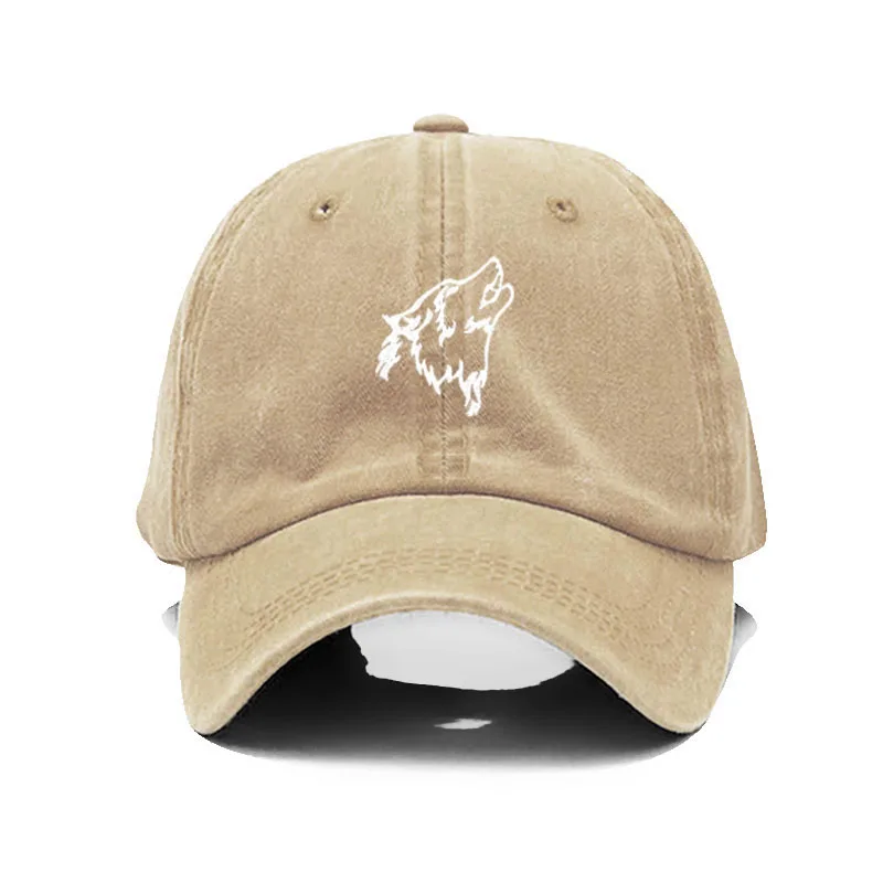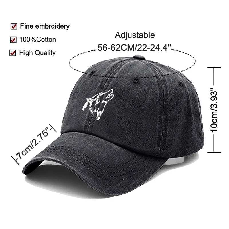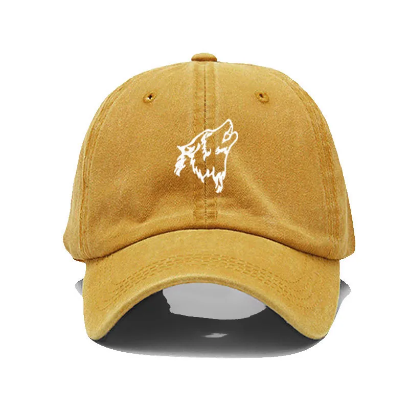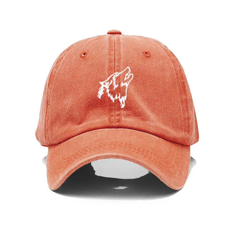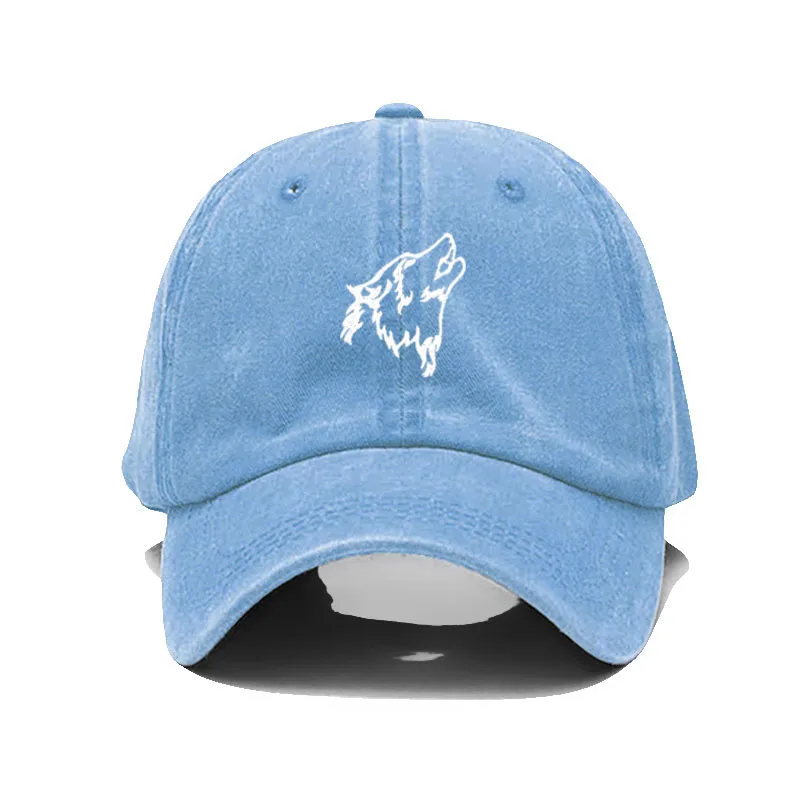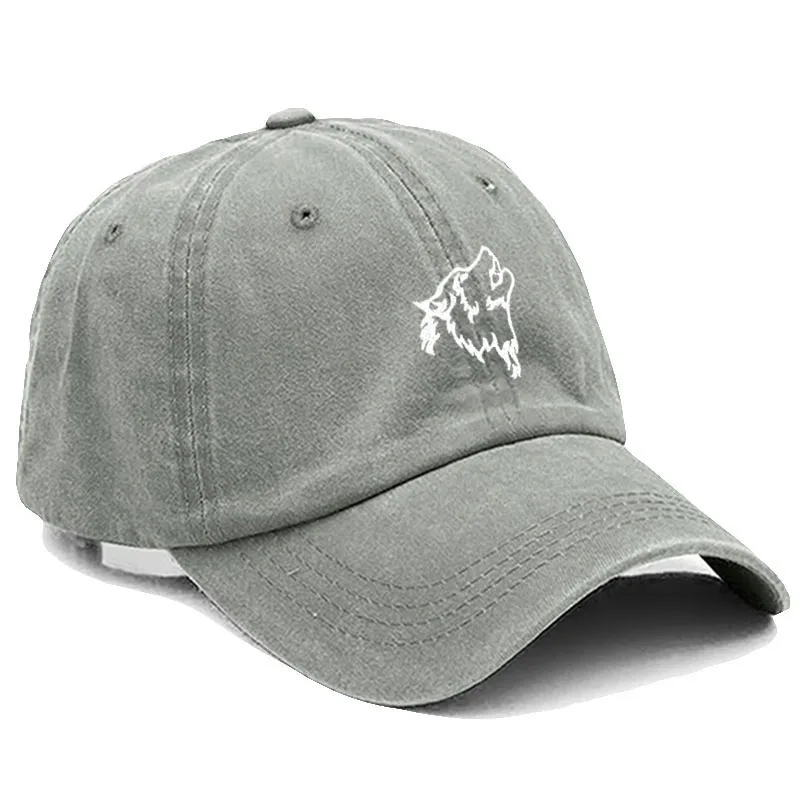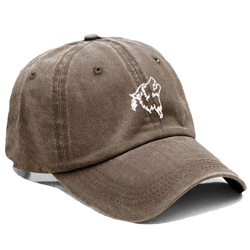 Wolf howl Embroidery Soft Cotton Men Baseball Cap